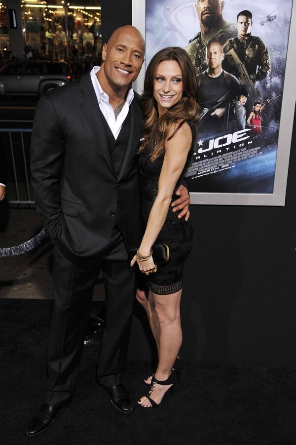 If you were an ex-CFL football player who went into wrestling and then became a Hollywood megastar who keeps getting good reviews about your acting no matter how crappy your movies are, and this was your current girlfriend, you too would be smiling like this at the premiere of G.I. Joe: Retaliation in Hollywood last week.Chris Pizzello/The Associated Press