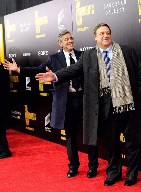 At some point, Monuments Men costar John Goodman was deemed too bulky and beastly for the red carpet, so George simply hailed a cab and sent the big guy packingEvan Agostini