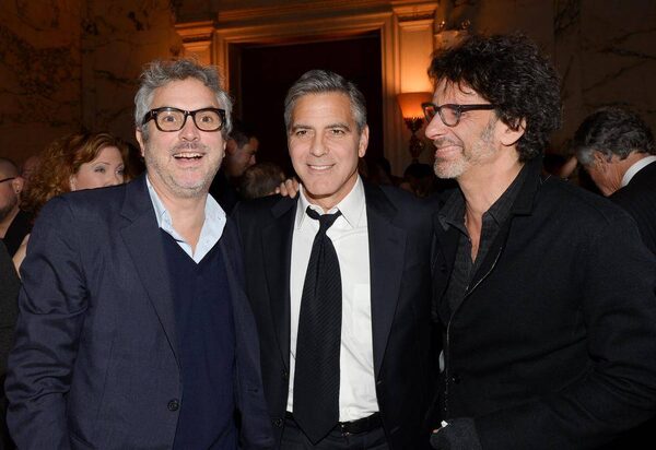 See? Clooney steals the scene again by posing with Gravity director Alfonso CuaronEvan Agostini