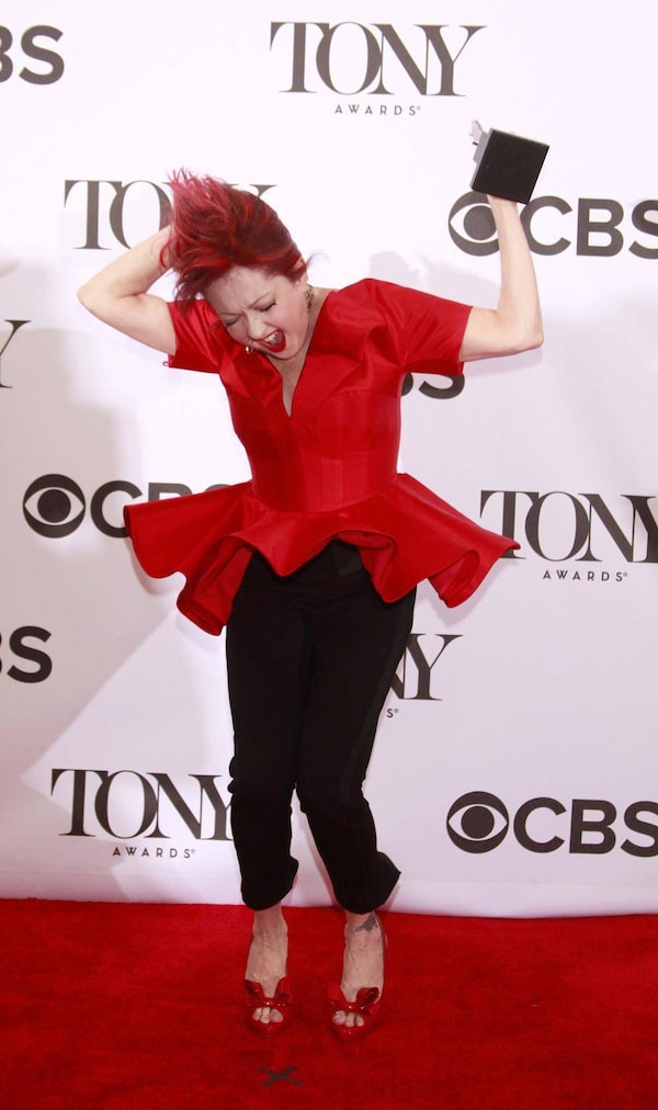 Cyndi Lauper punches herself in the back of the head for fun at the Tony Awards in New York on Sunday.Carlo Allegri/Reuters