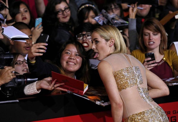 Naturally, celebs turned out for the ‘Hunger Games’ premiere. Here’s ‘Modern Family’ star Sarah Hyland forgetting all about some grubby fan after realizing that a camera lens is pointed in her directionMatt Sayles/The Associated Press