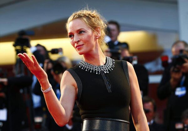 Uma Thurman, meanwhile, demonstrates the accepted Italian hand gesture for ‘Arrividerci, crinkly’TONY GENTILE/Reuters