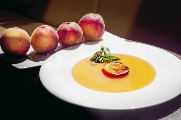 Chef David Lee’s peach puree is a great starting point for chilled soup, sorbet or a summer cocktail.JENNIFER ROBERTS for The Globe and Mail