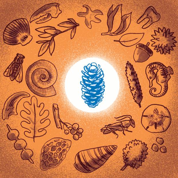 Along the way, Emma learned some basics about form, colour, texture and pattern. As she got older, the collection encouraged discussions about seasons, life cycles, growth patterns, camouflage and other aspects of nature. We uncovered interesting facts about pieces in our collection. Take the pine cone, for instance – it's a fine example of a Fibonacci sequence, a growth pattern formed by two spirals expanding from a common nexus in opposite directions. The Fibonacci sequence, which helps maximize a plant's exposure to the sun, is also evident in sunflowers, pineapples and Romanesco cauliflowers.