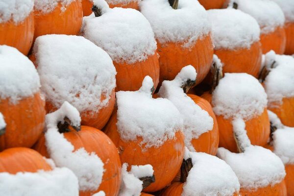 A field of snow-covered pumpkins in Waidring in the Austrian province of Tyrol.Kerstin Joensson/The Associated Press
