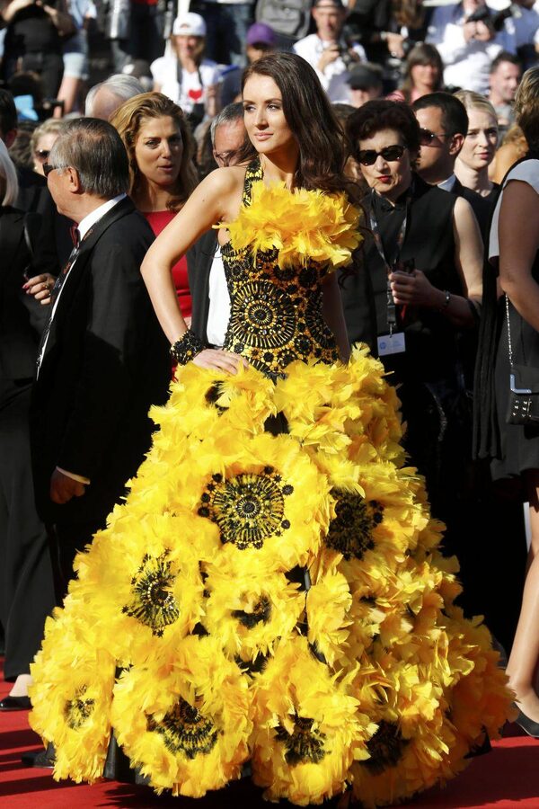 Sunflower lady here arrived in Cannes hoping to be discovered but was identified by our wire services merely as, “an unidentified guest.”REGIS DUVIGNAU/Reuters