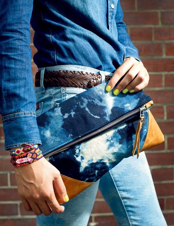 SOPHISTICATED PSYCHEDELIC: Tie dye gets a refined update with buttery leather trim. Scout & Catalogue Constellation clutch, $68, bracelets, $36 each through www.scoutandcatalogue.com. J.Crew shirt, $138 through www.jcrew.com. Seven for all Mankind jeans, $260 at the Bay (www.thebay.com). Belt, stylist’s own.Kevin Van Paassen/The Globe and Mail
