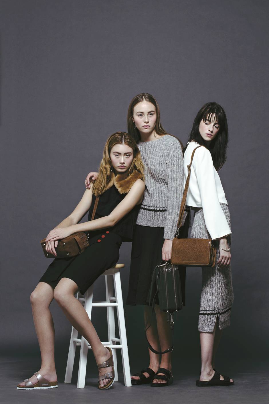 While at a trade show in Paris, Urbanovitch and Meneghetti met a woman who runs a women’s knitting collective in Craiova, Romania. After seeing the collective’s work, the duo jumped at the opportunity to work with them. “They have a cottage industry there, which is something that’s died in most other places,” she says. “It’s a tradition that’s kept going.” Each knitter is assigned one garment from the collection, which she sees through from start to finish. “They take a lot of pride in their work,” says Urbanovitch. Her other clothing pieces are now also produced in Romania, while leather handbags are made in Italy.