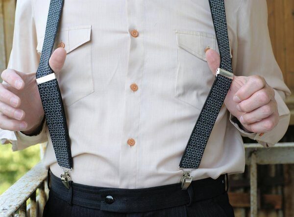 How can a man who uses suspenders to hold up his trousers avoid the American Gothic look when he takes his jacket or sweater off? And how would you react to embroidered Tyrolean ones?