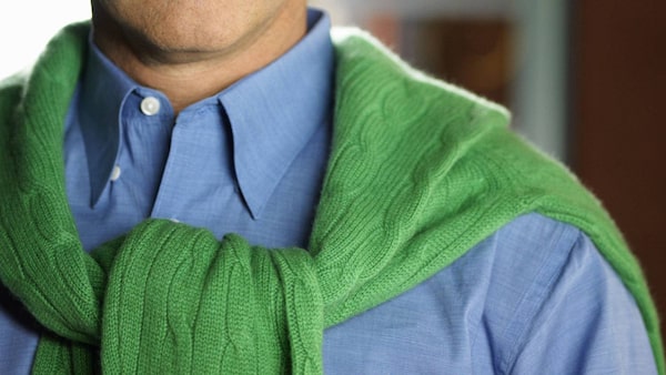 I'm a Canadian currently living in Paris and I've noticed a lot of men wearing sweaters draped over their shoulders. I remember seeing this look in the eighties, but it seems to have faded in North America. Is it too insouciant a look to wear back home?