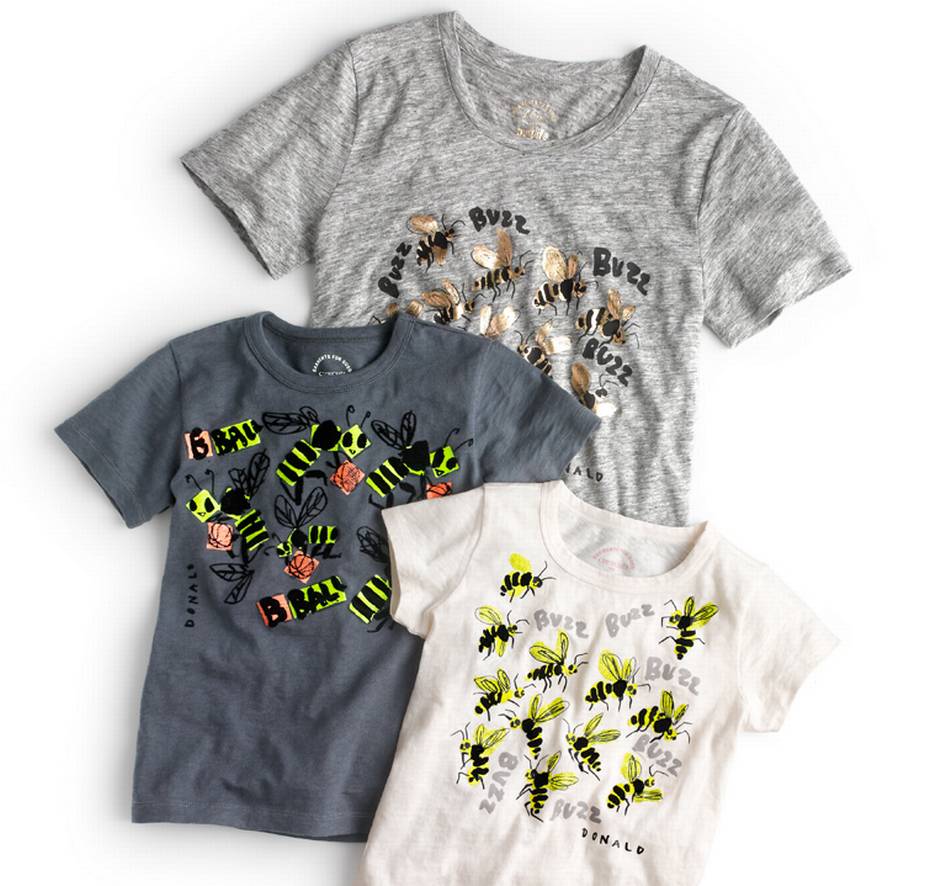 Now Robertson has teamed up with J.Crew in a Save the Bees campaign, which is part of the clothing brand’s Garments for Good program. Robertson’s whimsical bee illustrations are being featured on limited-edition T-shirts as well as a series of related products to help raise funds for Buglife, a U.K.-based organization dedicated to the conservation of bees and other insects.