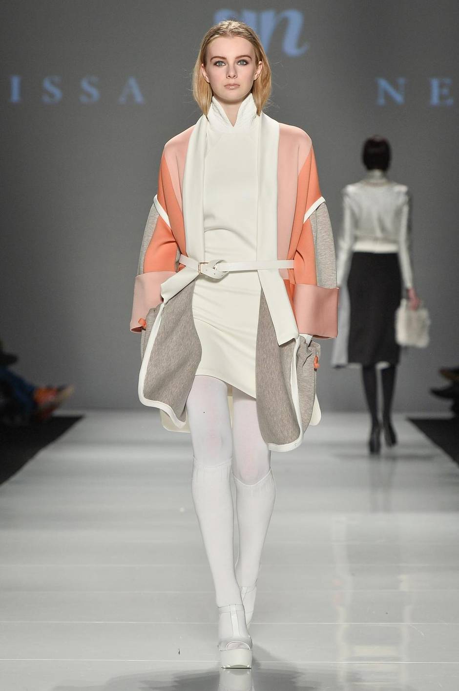 Montreal-based designer Mélissa Nepton offered an antidote to all the glamour with a collection focused on elevated wardrobe basics; her colour-blocked kimono is an essential quirky cover-up.