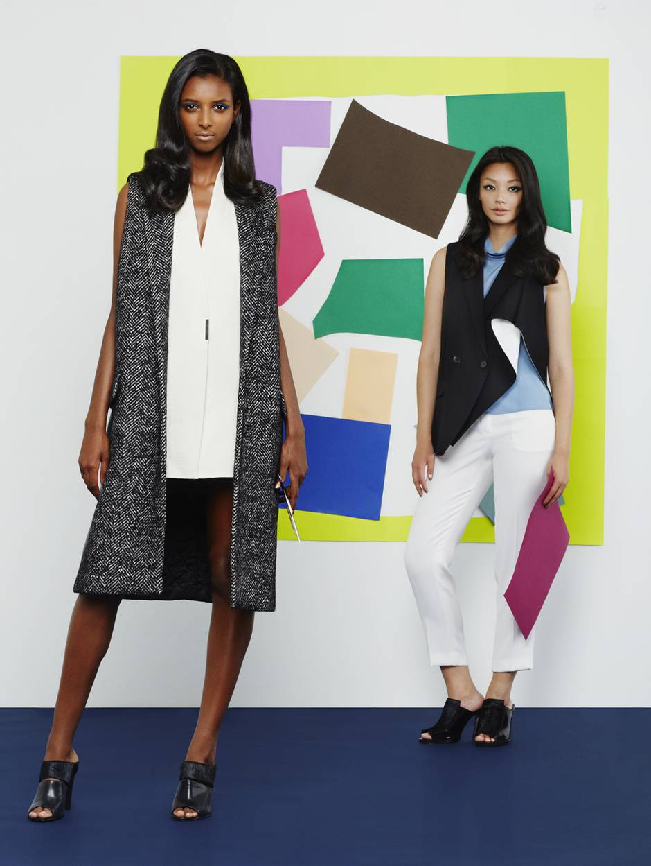 From left: Helmut Lang vest, $455 at Holt Renfrew (www.holtrenfrew.com). Max Mara waistcoat, $1,250 through www.maxmara.com. Calvin Klein shoes, $159 at Hudson’s Bay (www.thebay.com). Theory blazer, $415, and pants, $270 at Holt Renfrew. Jennifer Torosian top, $225 through www.jennifertorosian.com. Opening Ceremony shoes, $425 at Hudson’s Bay.