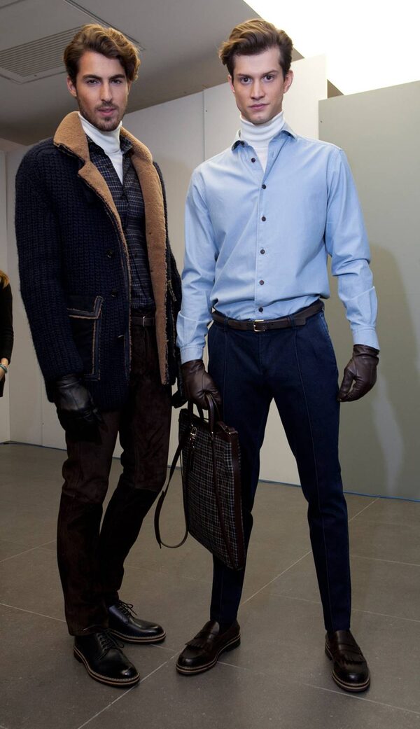 Turtlenecks for men (or at least those pervy, polycotton dickies and mock necks of the eighties) have, over the years, suffered from a bad reputation – and rightly so. This season’s slim, luxurious models, however, are bound to rehabilitate the look. Made of extra-fine merino wool or cashmere, they are the ultimate cold-weather layering piece, best worn scrunched at the neck (never folded) under an oxford shirt (as shown here at Ermenegildo Zegna’s fall/winter show) or paired sans shirt with a jacket or blazer. Synthetic blends, though, are to be strictly avoided; the strongest reaction they’ll evoke is an aggravated case of razor burn.Ivan Lattuada