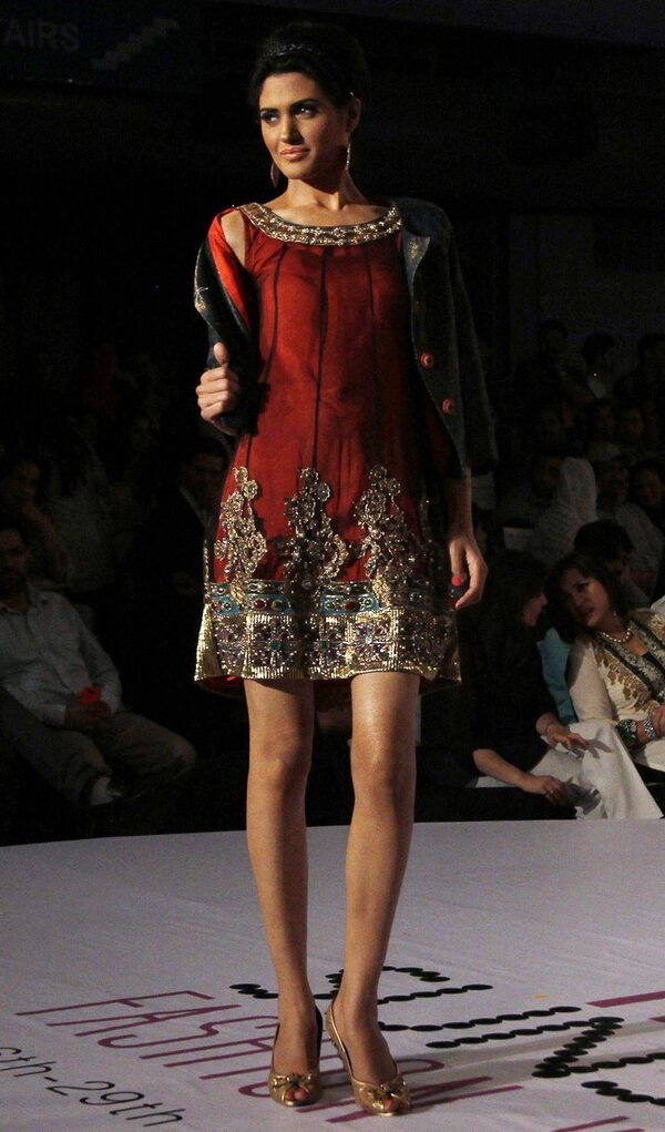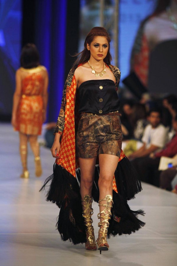 A model wears a creation by Shehla Chatoor at Lahore Fashion Week in Lahore, PakistanK.M. Chaudary/The Associated Press