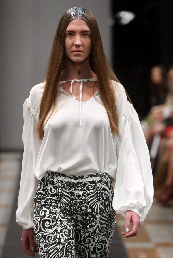 A model wears a creation by Tamara Harydavets and Tatyana Efremova at Belarus Fashion Week in MinskSergei Grits/The Associated Press