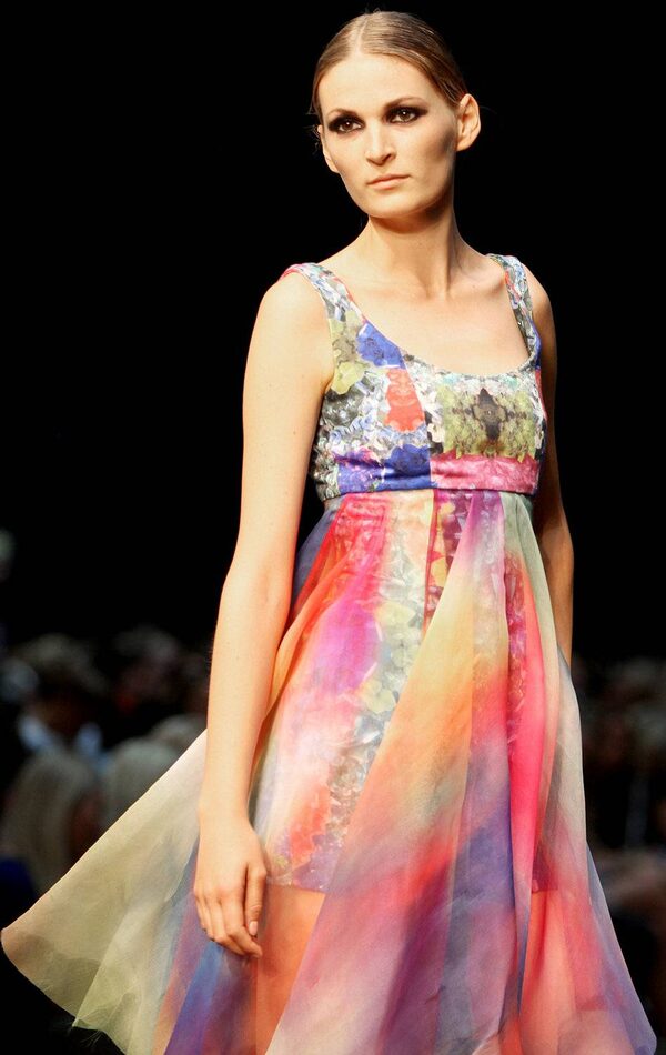 A model presents a dress by fashion designer Benedikte Utzon on August 4, 2011, in Copenhagen, during Copenhagen Fashion Week.ERIK REFNER
