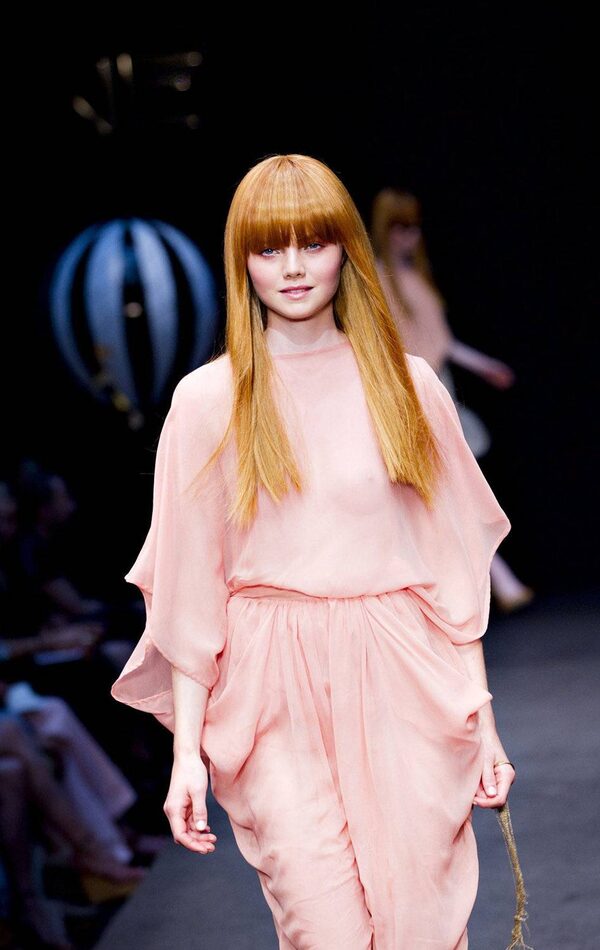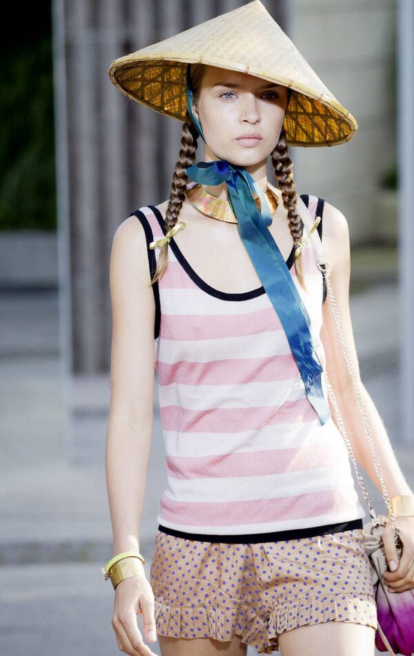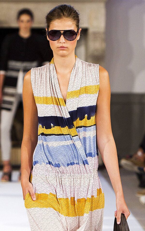 A model wears an outfit by Danish label Baum und Pferdgarten during Copenhagen Fashion Week at Copenhagen City Hall, Thursday, Aug. 4, 2011.KLAVS BO CHRISTENSEN