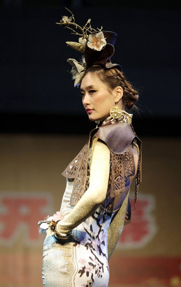 A model presents a creation adorned with chocolate feathers.ALY SONG