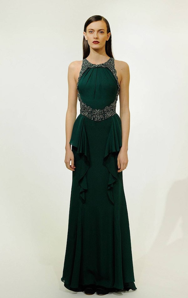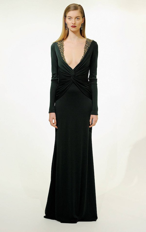 A plunging neckline from the Badgley Mischka Fall 2012 collection.Jemal Countess