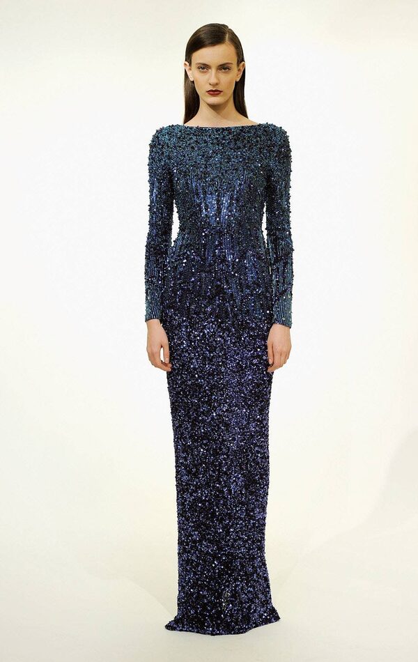A luxe blue dress from the Badgley Mischka Fall 2012 collection.Jemal Countess