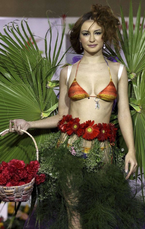 A model presents a creation designed from flowers and plants during Flower Show Turkey in Istanbul December 15, 2011.MURAD SEZER