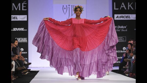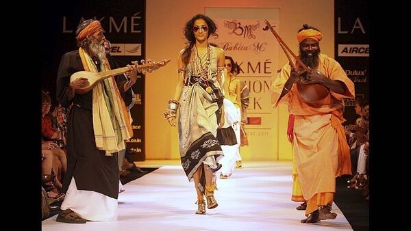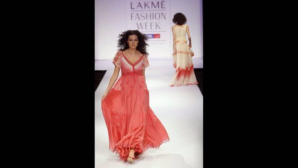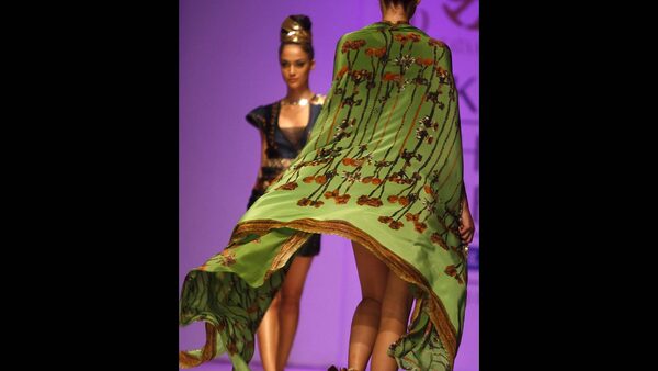 A model displays a design by Jyoti Narula during the Lakme Fashion Week in Mumbai, India, March 15, 2011.Rafiq Maqbool