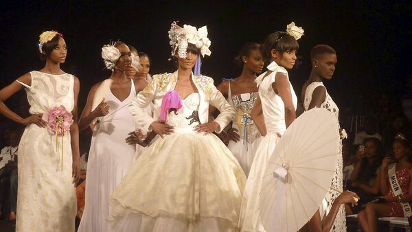 Models show wedding dresses by a designer during a fashion show organised by London based Arise Magazine in Lagos on March 12, 2011.SUSAN NJANJI