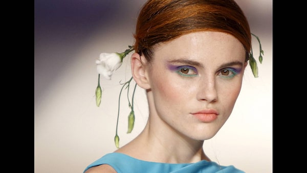An Indian model displays designer Little Shilpa's creations during the Lakme Fashion Week in Mumbai, India, Saturday, March 12, 2011.Rafiq Maqbool