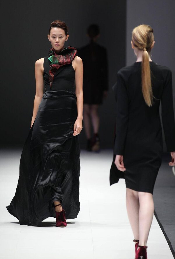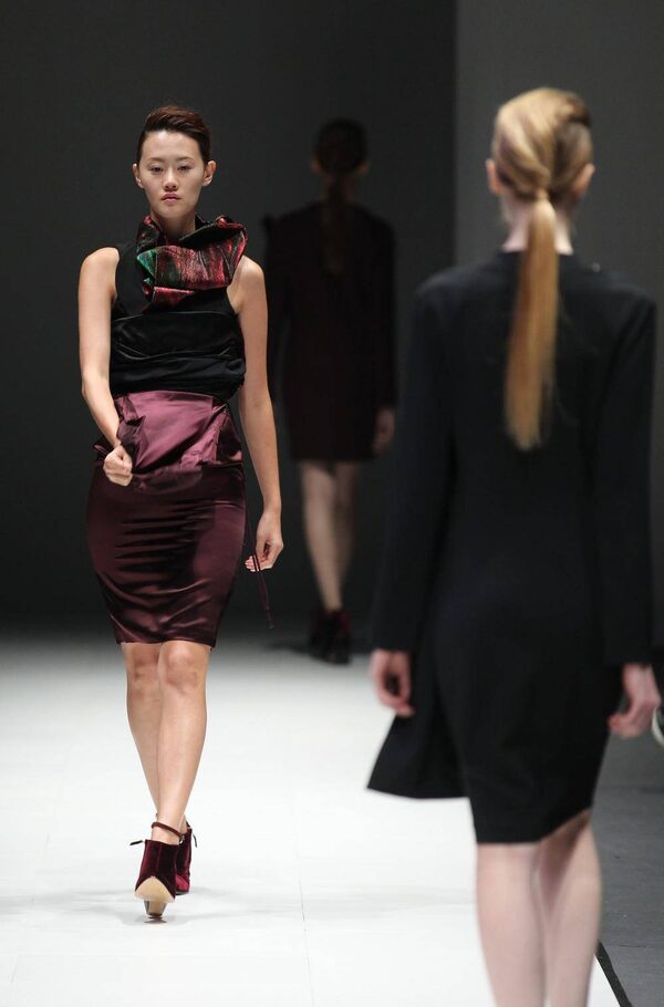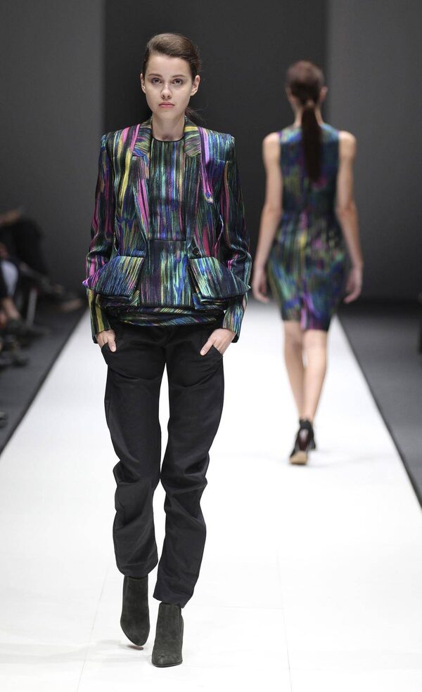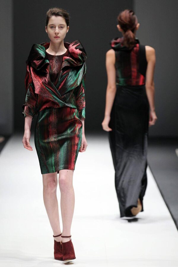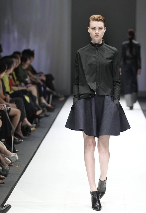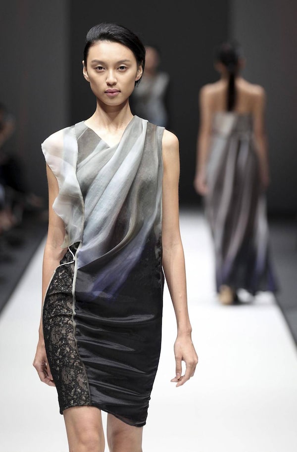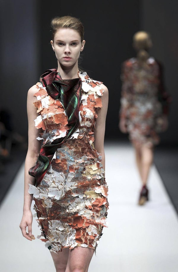 A model wears a creation by British-Turkish designer Hussein Chalayan during Audi Fashion Festival in SingaporeWong Maye-E/The Associated Press
