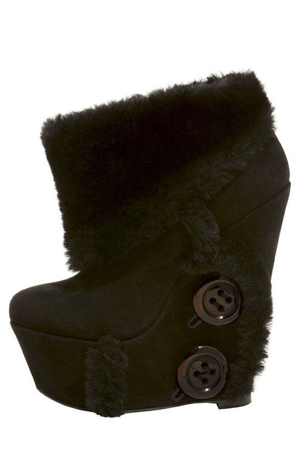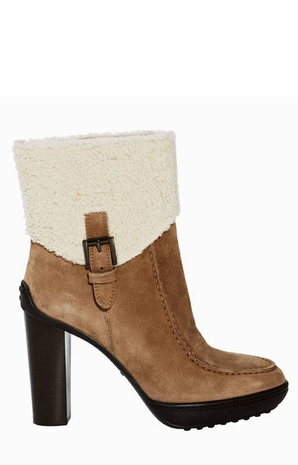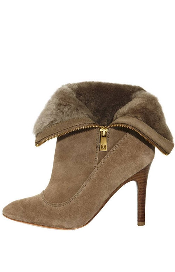 While undeniably practical, those ubiquitous sheepskin booties that are so popular this time of year leave a lot to be desired in the looks department. To keep warm in style, slip into a pair of fur-trimmed ankle boots instead. (Choose one with a low heel or sturdy platform for added comfort.)