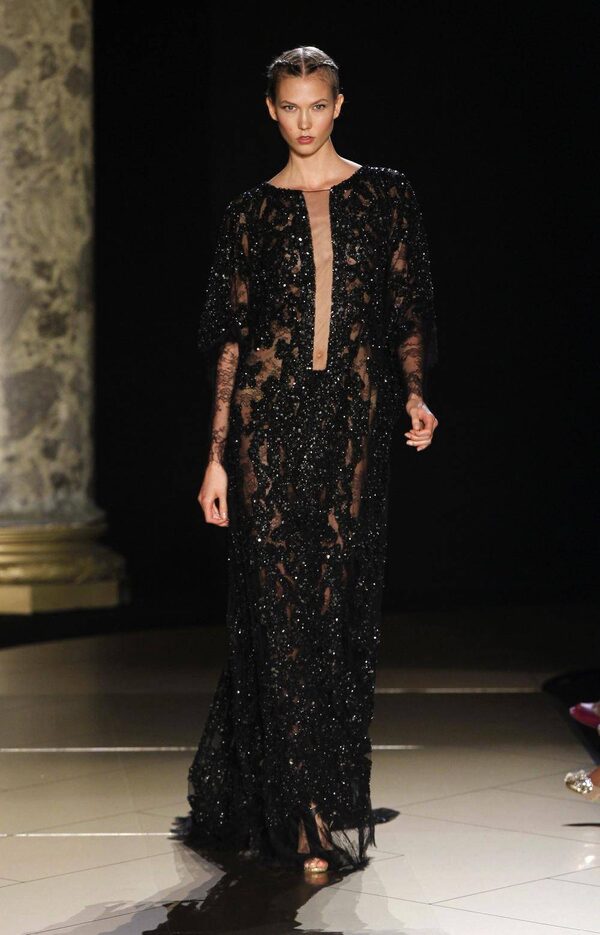 Master of diaphanous dresses, Elie Saab channeled an Ottoman theme this season, opening the collection with a grouping of beautifully beaded gowns in black. This suggested a departure for the designer who typically prefers a pearlier palette.GONZALO FUENTES/Reuters