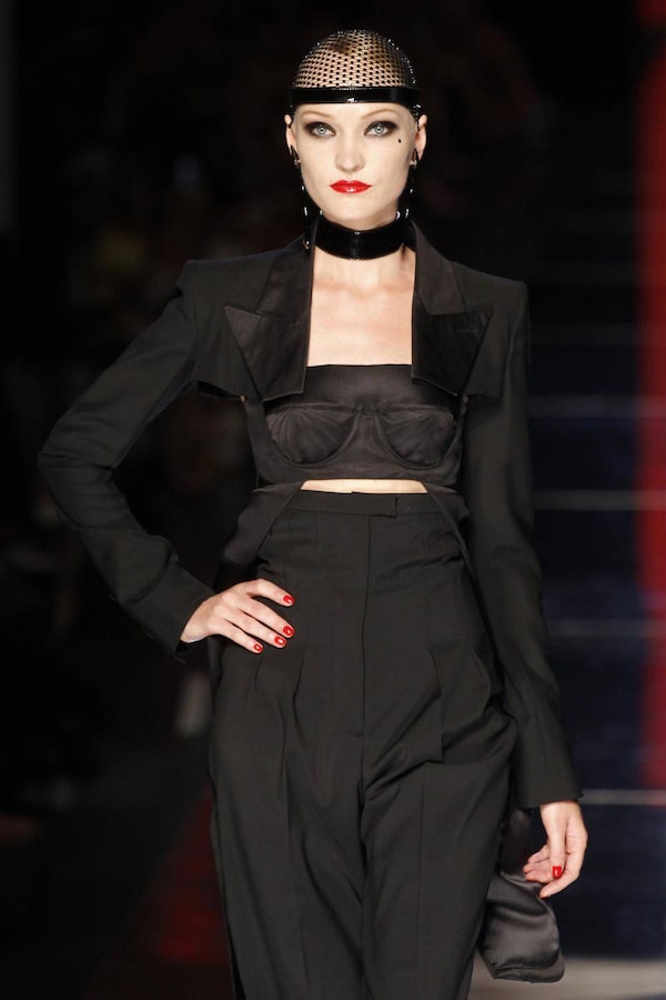 It was at Cannes, where Jean-Paul Gaultier was among the film festival judges, that he found his inspiration: the adaptation of Confession of a Child of the Century in which Pete Doherty plays a lovelorn Parisian circa 1830. The show kicked off with strict black suiting and shrunken tuxedo jackets – some in crocodile or with bustier fronts.BENOIT TESSIER/Reuters