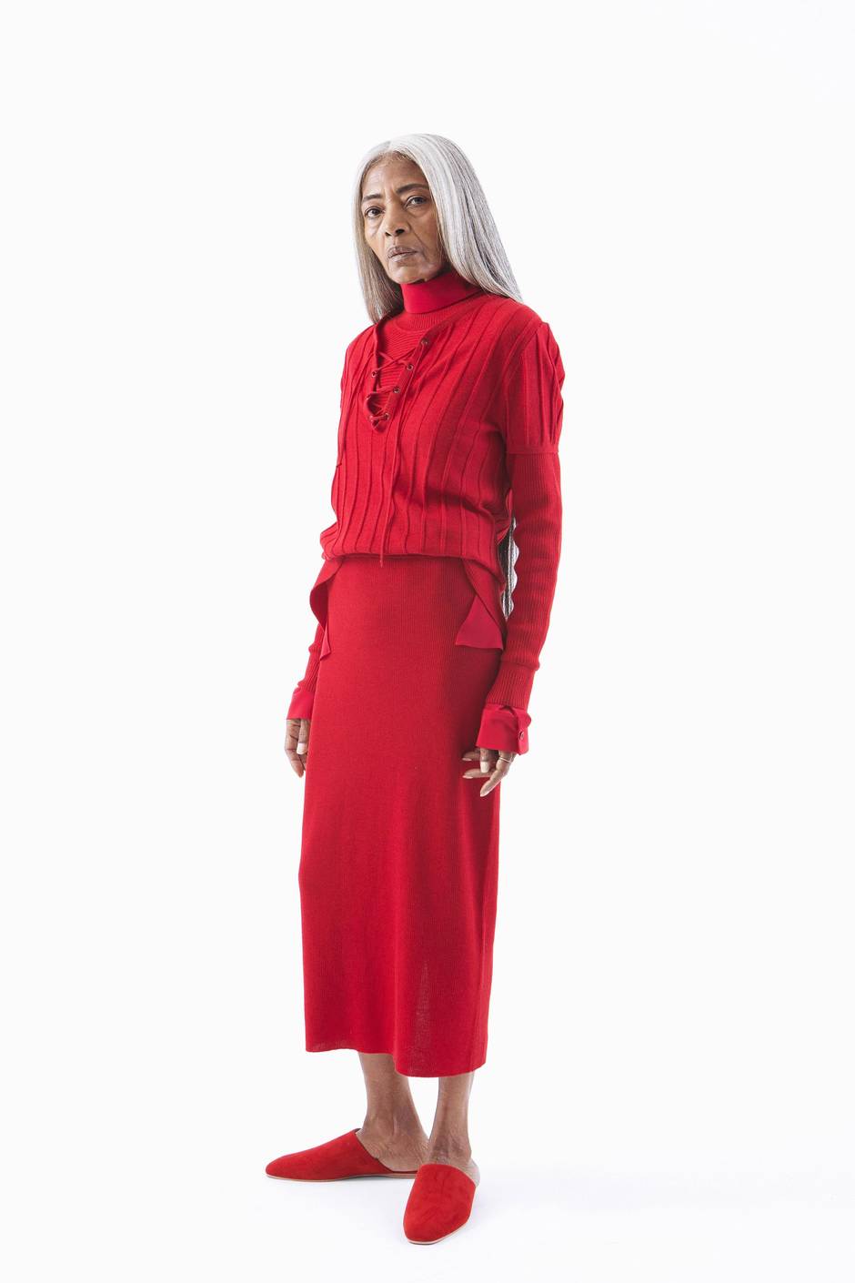 While I loved all of the spring 2018 offerings from New York-based brand Tome, their layered, monochromatic knitwear look really stood out. In a juicy tomato red and with a sleek and elegant silhouette, it's a stunner. Separately, the pieces would serve as springtime staples for work and for play.