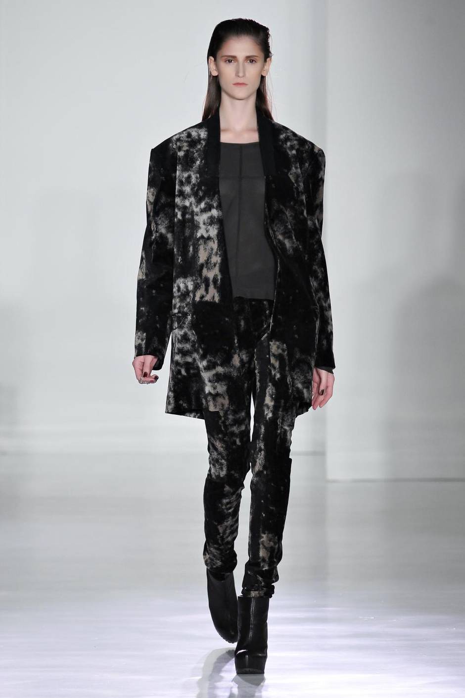 “We were fortunate that Daiane Conterato, one of my favourite models, was available for our show, which made this opening look such a no-brainer. In particular, the bleach-printed velvet pants were so popular that it’s safe to call them one of my greatest hits.” fall/winter ’12