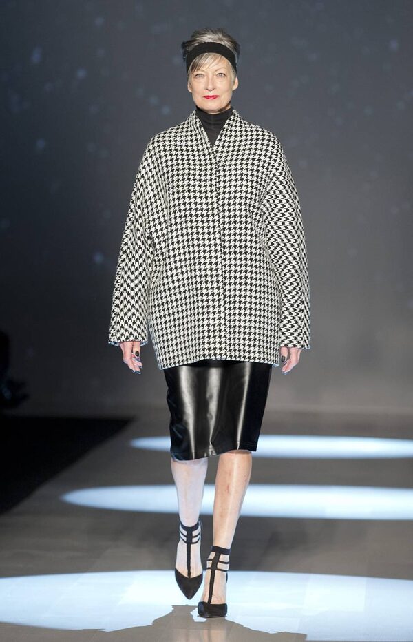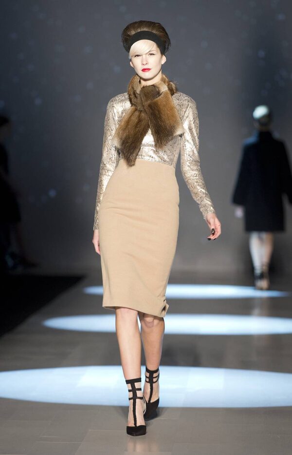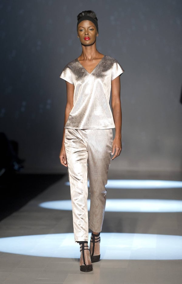 Faux furs, liquid pleathers and sequined snakeskin were among the Camilleri classics present, but cut conservatively with the older customer in mind. "The cuts are different, because our bodies change," she said backstage, describing the line's roominess, especially in the waist.