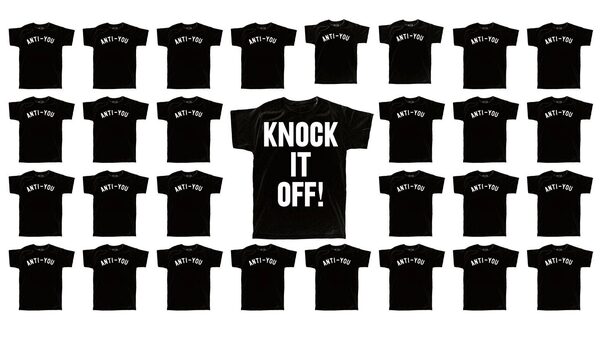 "It comes down to respect between designers," as Reilly Hodgson, founder of Toronto's No Fun Press, sees it. "Like, 'You should know that I already did this and I've been running with it.'" After founding No Fun from his bedroom in 2011 (motto: "Negativity is our Specialty!"), Hodgson quickly found an audience for the winking misanthropy of his grumpcore apparel, patches and pins. But Hodgson didn't anticipate the reaction to one of his first designs, a T-shirt featuring a simple, block-font "Anti-You" printed in an arc across the chest, à la seventies high-school team jersey. Within months, Anti-You knockoffs – complete with identical arc and blockish font – appeared in several independent Etsy shops, some even featuring Hodgson's product photography.