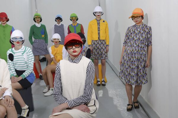 Stylist Shirley Kurata (far right) pictured at the spring 2016 presentation of London-based designer Peter Jensen. Kurata served as muse for the quirky collection that boasted an eclectic mix of colour and prints.IMAXTREE.COM