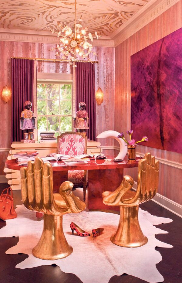Wearstler-designed interiors, like the office pictured, are famously playful. ‘The only rule I follow is to take risks and have fun,’ she says.G CRAWFORD