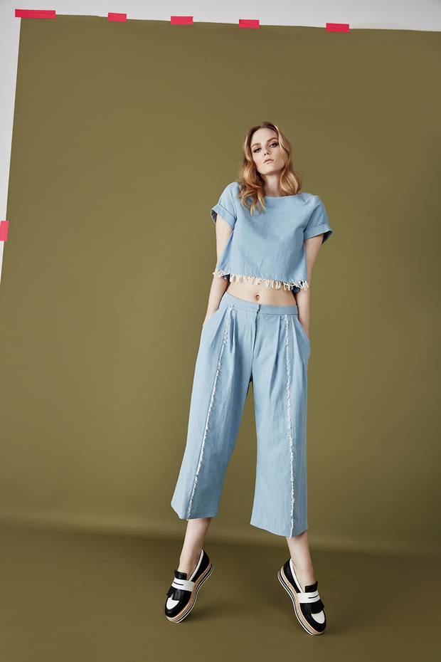 For her fall 2016 collection, MacMillan mandated that moving forward, her work would not feature leather, fur or feathers, so it’s not surprising that the starting point for her new collection comes directly from nature itself. “The inspiration for this collection is swans,” MacMillan says. “I’ve always been inspired by different kinds of birds, their majestic colouring and the beauty of them.” The result is a range of pieces done in white, blues and golds, some featuring a silk-screened avian print and other garments that draw their detailing from the fine ruffles of feathers, like the delicate swath of fringe on the line’s chambray separates. www.hilarymacmillan.com
