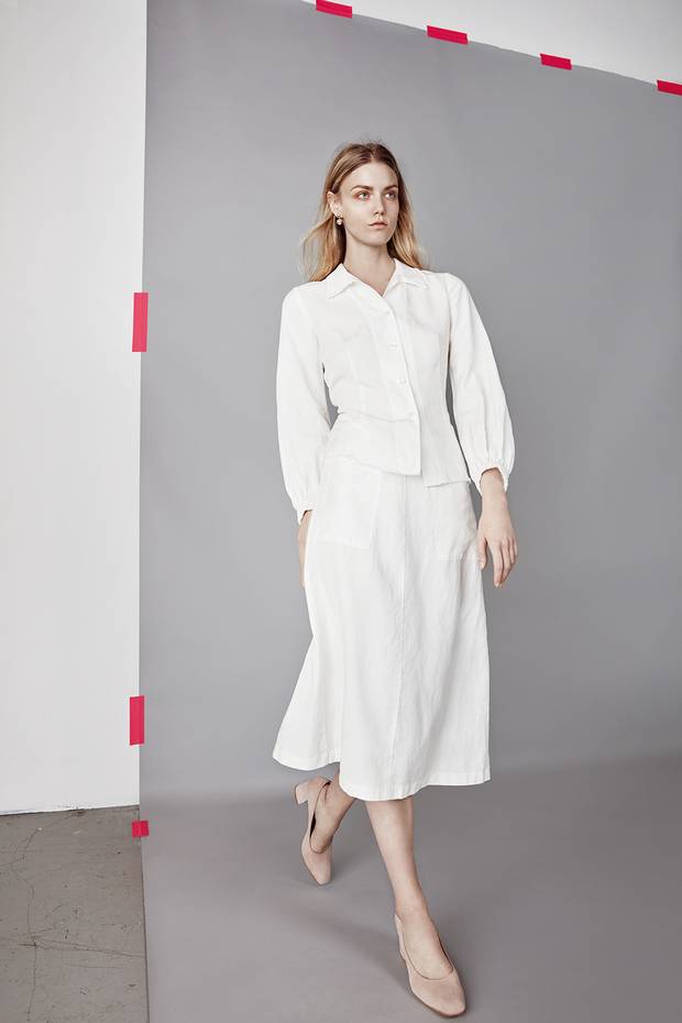 With a Toronto boutique that focuses on contemporary women’s-wear brands that convey a quieter notion of style, designer Trish Ewanika’s own label is similarly subdued, rooted in function but retaining a sense of elegance. “I was struggling for something to wear that felt cool, comfortable, but that was still stylish,” she says of what spurred the creation of the all-white cotton Tencel linen blend pieces for her spring line. “And I always look back to early sportswear and leisure wear from the 1930s.”