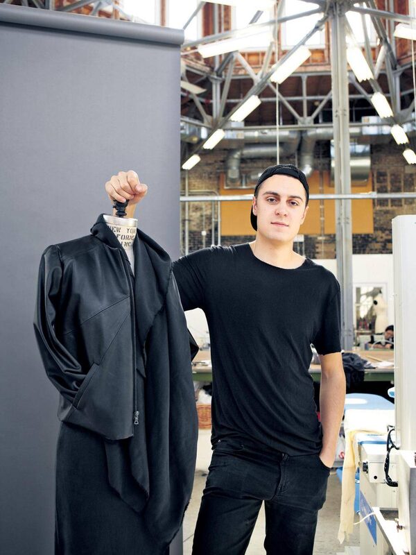 The creative force: Sid Neigum, last year’s winner of the TFI New Labels competition, poses above with a piece from his self-described ‘optimistic post-apocalyptic’ fall 2013 collection. This will be his first season showing with IMG. ‘I’m excited to build new relationships and work with many talented people,’ he says of IMG’s plans to unify the event.Shalan&Paul/The Globe and Mail