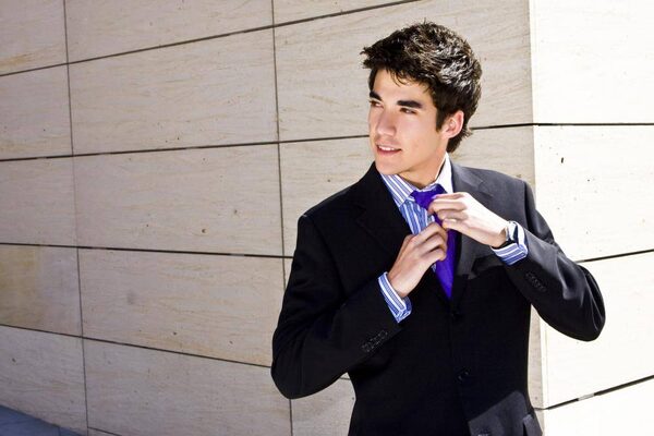 The trousers will be very narrow, with a flat front and a low rise. No cuffs. Your son will also, of course, need a pair of shiny plain black leather lace-up shoes. With this basic uniform and a few shirts and ties (buy at least two white shirts, one blue and one pink), he can do lunch, boardrooms, weddings, funerals and nightclubs. Presumably without the help of mom.