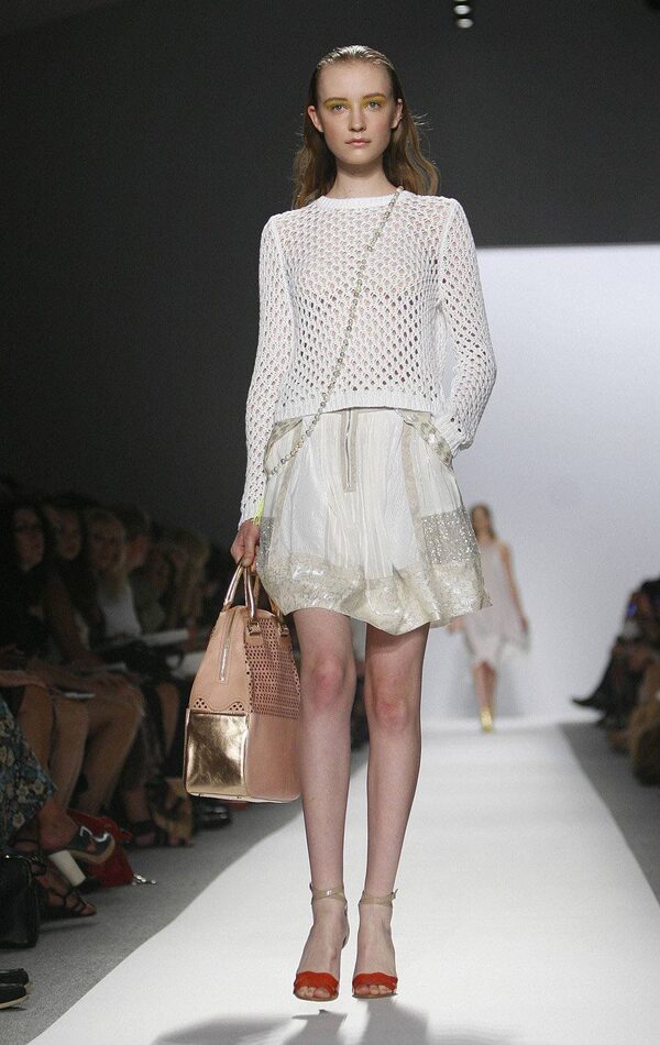 A model walks the runway at the Peter Som Spring 2012 fashion show during Mercedes-Benz Fashion Week at Formula Studios on September 9, 2011, in New York.Peter Michael Dills