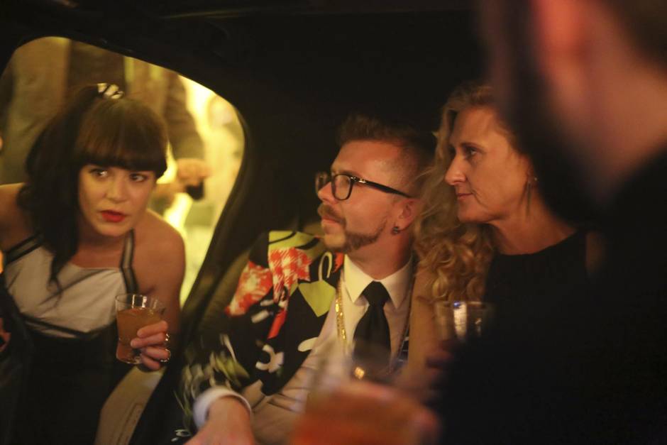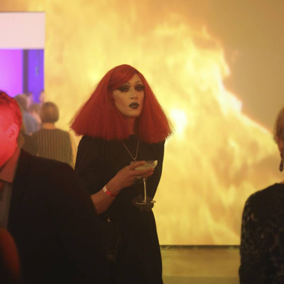 Excess and the unexpected seem to run in Rubell’s veins. Her uncle, after all, was the late Steve Rubell, co-owner of the legendary nightclub Studio 54. This latest performance, with its tricks and turns, kept guests on their toes, wondering what exactly was next. At one point, a food fight broke out between the mezzanine levels; potato chips descended over the crowd like confetti. As the food performance came to an end, dinner guests joined a larger crowd in the gallery, where various installations kept with the theme. Toronto-based artist collective 8-eleven presented a site-specific work: a white stretch limousine with a red strobe light attached to its roof and surrounded by projections of flames.