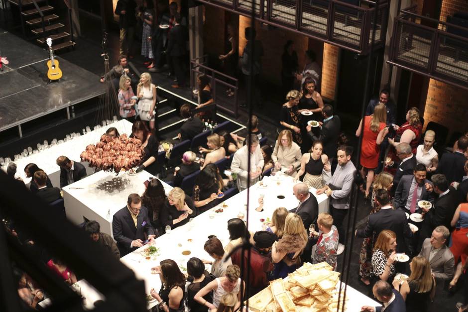 The party began with the most excessive installation of the evening, a large-scale food-focused interactive performance by New York-based artist Jennifer Rubell, titled So Sorry, in collaboration with Toronto chef Grant Van Gameren (creator of Bar Isabel and Bar Raval), coffee master Sam James (Sam James Coffee Bar) and actress and writer Winsome Brown. Guests entering the performance at Toronto’s Harbourfront Centre Theatre instantly became a part of the show; a chandelier made of octopus hung at the centre of the space and attendants cut tentacles for guests to enjoy. There was also a large, stark white surface through which hands emerged from fist-sized holes to offer guests bites of food, making for an unusual experience but a welcome change from typical gala dinners.