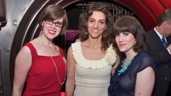 Joanne Williams (left), Natasha Mytnowych and Julia Lefebvre at unScripted, a fundraiser in support of Canadian Stage's community initiatives, held May 13 at One King West in TorontoRyan Emberley