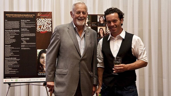 Avie Bennett (left) and Joseph Boyden at the Canadian Aboriginal Writing and Arts Challenge held June 6 at the Design Exchange in Toronto.Veronica Malinski