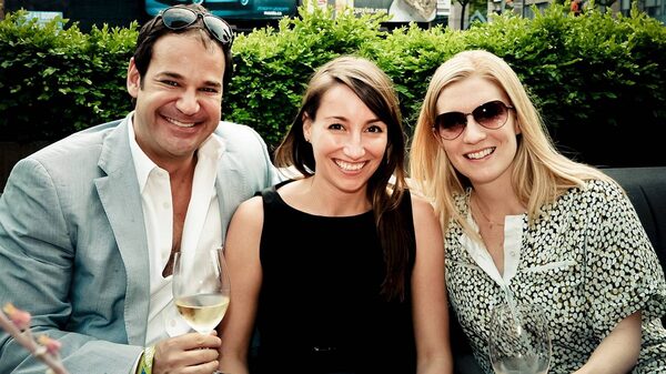 Mark Brodkin, Marissa Wallace and Erika Neudorf at the Bordeaux After Work Party held June 7 at Origin Restaurant in Toronto.