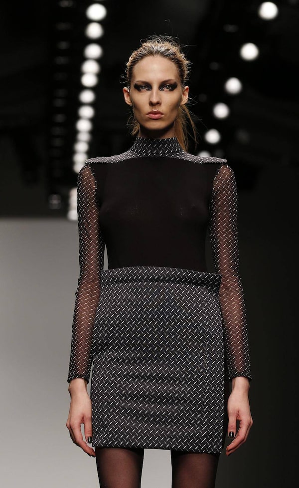 <i>High necklines</i> <br> <br> A model presents a creation from the Aminaka Wilmont Autumn/Winter 2013 collection during London Fashion Week, February 19, 2013. This look was also seen at Giles, Issa London, Todd Lynn and TemperlySuzanne Plunkett/Reuters